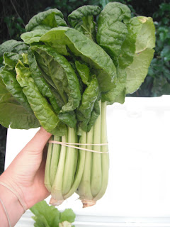Carrot tops. Did you know you can eat them? They're a little dry fresh, but you can chop them up and toss them in a stir fry or you can dry them and use them like you would parsley (a relative of the carrot). We also had someone at market tell us that he'd heard of carrot top tea. If anyone knows of some other uses, please let us know
